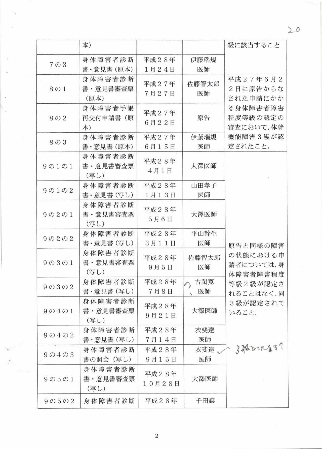 同一の体幹機能障害2級の申請について、すべて却下している