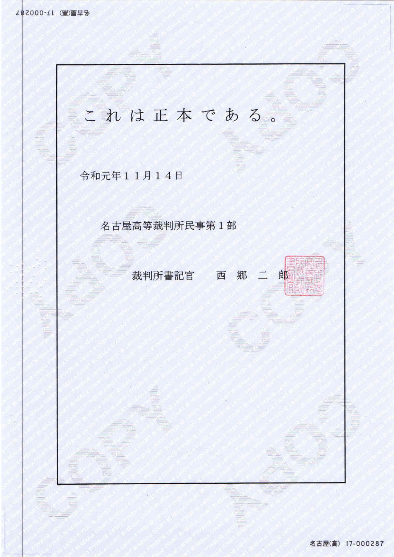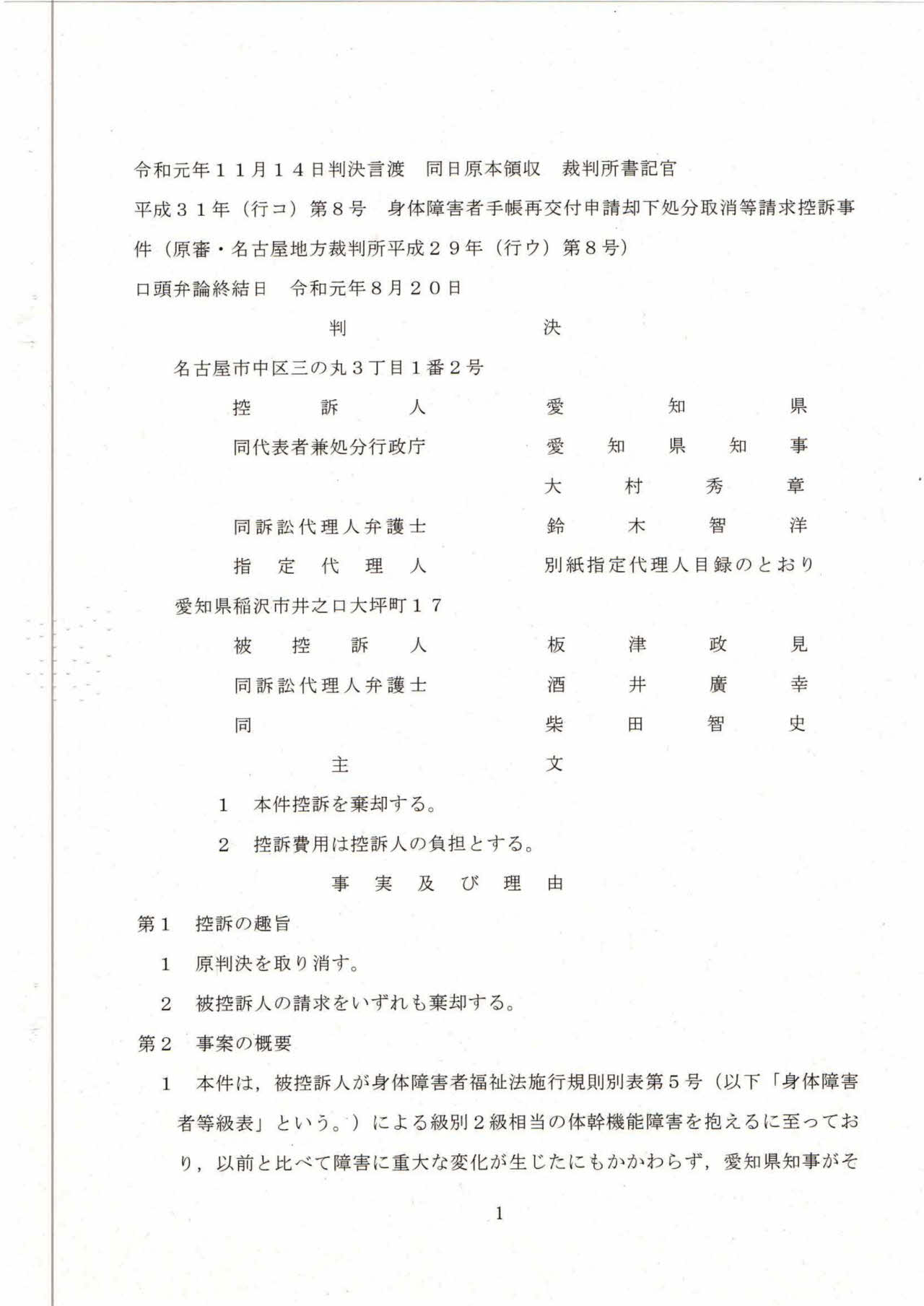 控訴審判決 名古屋高等裁判所